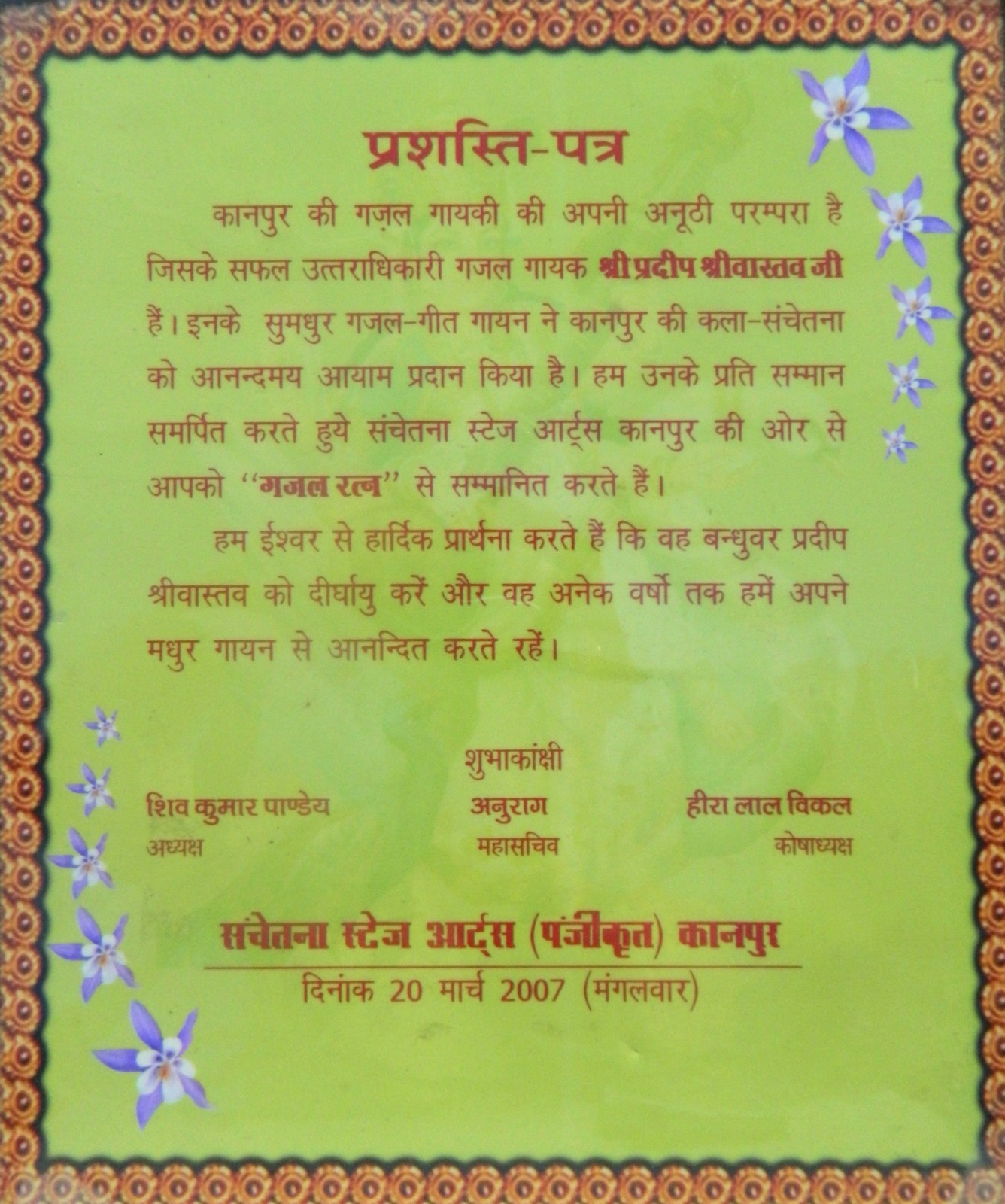 Conferred the title of "Ghazal Emperor of Kanpur" by the Kanpur Bar Association in 2013.
