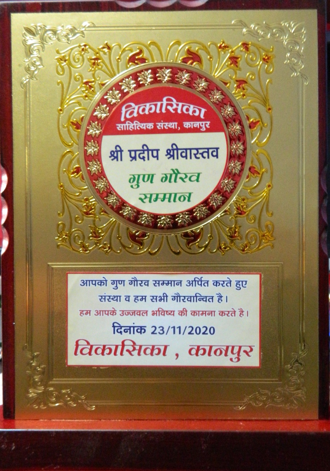 Gun Gaurav Award by Vikasika Poetry Organization on 23-11-2020.