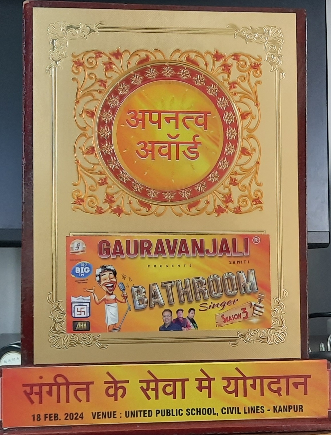 Awarded the title of "Sangeet Bhushan" by All India Shri Geeta Mela Committee, Kanpur.