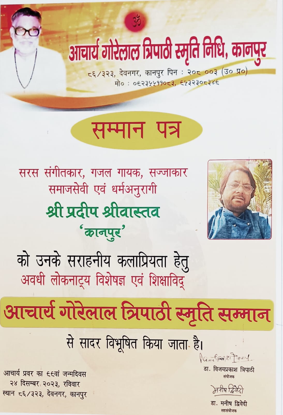 Conferred the title of "Ghazal Emperor of Kanpur" by the Kanpur Bar Association in 2013.